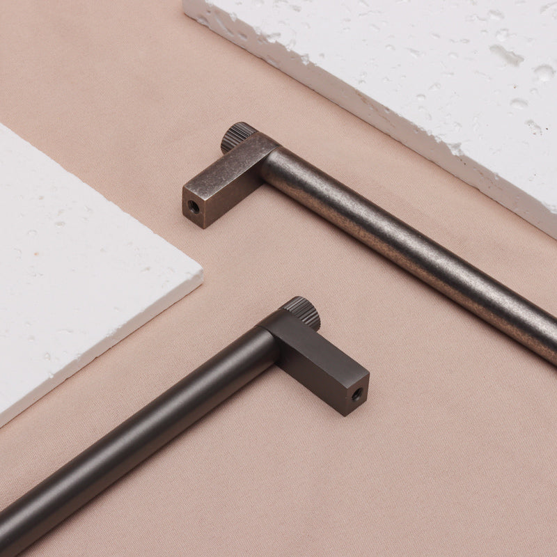 The Foundry Handle has a grounded, solid feel without being heavy. Constructed from solid brass with a beautiful gunmetal finish, it features subtle linear detailing on each end for a refined touch. Use the Foundry pull to add quiet sophistication to kitchens, bathrooms, and bespoke joinery alike. The Gunmetal finish is an ideal alternative for those who like the contrast and modernity of black hardware, without the heaviness.
